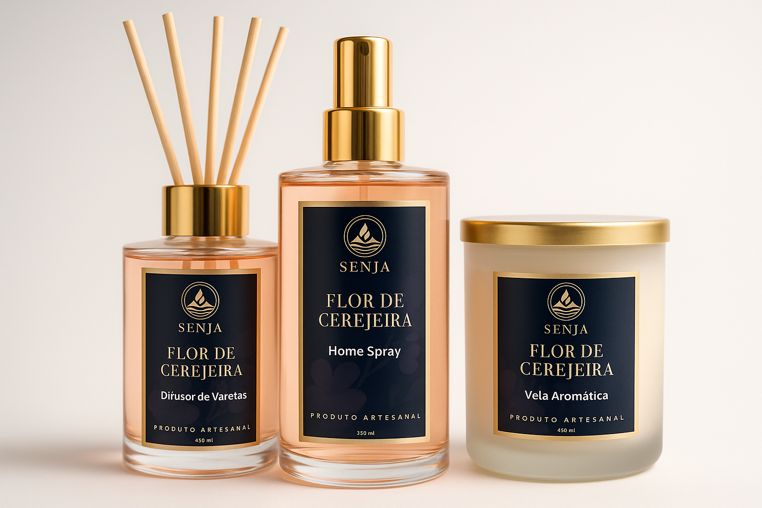 Kit Completo Flor de Cerejeira com fragrância floral encantadora, trazendo sofisticação e romantismo ao ambiente.
